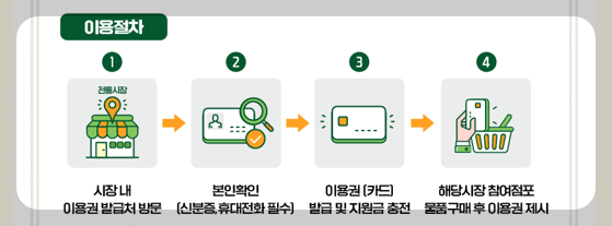 전통시장 내 국산 농축산물 한정 구매 가능.