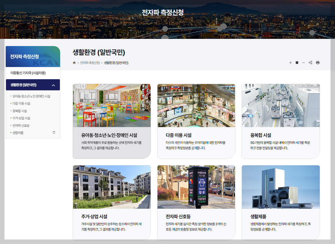 집, 사무실, 음식점, 상점 등 우리 생활공간의 무선통신(기지국, 중계기, 와이파이 등)에서 발생하는 전자파 세기를 직접 측정할 수 있도록 “소형 전자파 측정기”를 대여하고 있습니다. 국민 누구나 신청·이용해 볼 수 있으며, 측정 결과를 QR코드로 실시간 확인할 수 있습니다.